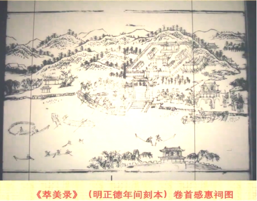 《萃美录》是记载浙江镇守中官刘璟德政的书籍。此书卷首的感惠祠图,是刘璟离任之际杭州地方为其修建的生祠,用于歌颂刘璟在地方的德政。明中后期地方士民对施慧于民、能行善政、镇静无扰的贤良镇守中官的美政进行褒扬、传播,塑造和树立镇守中官模范,以达到彰善去恶的教化目的。